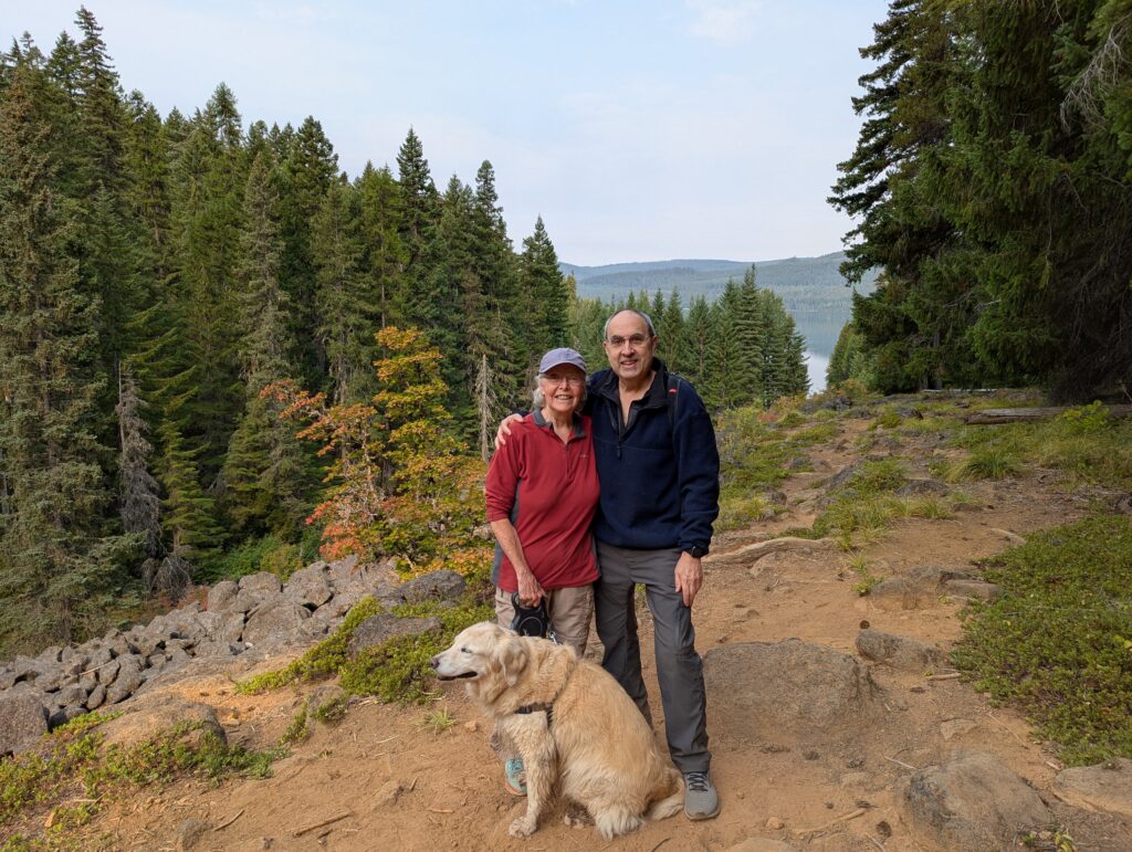 Sept. 2 – 4, 2025 – Gone Creek Campground is located in the Mt. Hood National Forest and sits on the edge of Timothy Lake, in the shadows of Mt. Hood. The campground was built and is run by PGE, which manages the Timothy Lake Dam that created the lake on the Clackamas River. On our way there, we visited the Zigzag Falls for a picnic and hike. Our reserved campsite was without shade, so we quickly found and moved to #47 which was great. We enjoyed a marvelous hike up to the Pacific Crest Trail. Penny enjoyed a couple swims in the lake as well. We listened to a flock of ravens, whose cries were very loud and angry each evening.